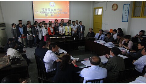 (本网讯 李策)5月24日,william威廉亚洲(中国)有限公司举行了本院2014届硕士学位论文答辩。湖南师范大学博士生导师、国家社科基金评委吴家庆教授、湖南城市学院党委副书记、副院长孟昭武教授应邀作为本次答辩委员会主席。william威廉亚洲(中国)有限公司十四名教授、副教授加了本次答辩。2011级22名申请硕士学位的研究生参加了答辩,2012级18名研究生旁听了本次答辩。