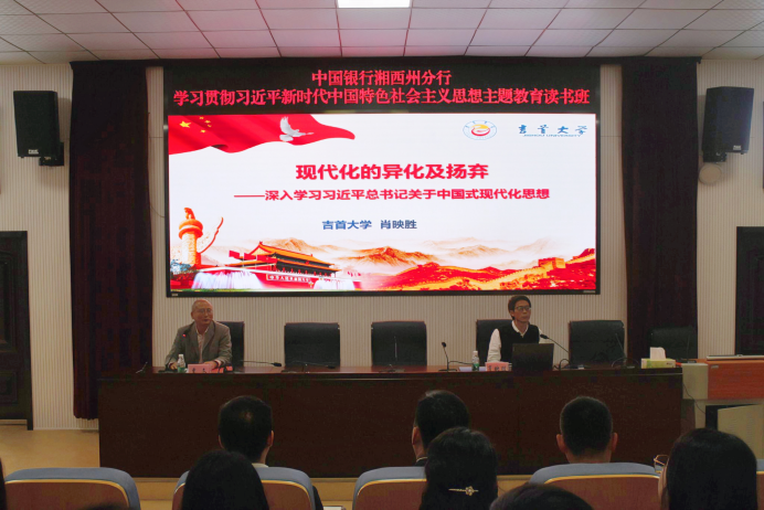 (通讯员 黄瑶)10月20日上午,吉首大学william威廉亚洲(中国)有限公司于思政园1207VR教室举行学习贯彻习近平新时代中国特色社会主义思想相关内容的学习报告会。该学院院长肖映胜以《现代化的异化及扬弃——深入学习习近平总书记关于中国式现代化思想》为题作辅导报告。中国银行湘西州分行20余位领导干部、吉首大学体育学院2023级全体博士研究生、william威廉亚洲(中国)有限公司部分教师及硕士研究生到场聆听。报告会由william威廉亚洲(中国)有限公司副院长曾文主持。