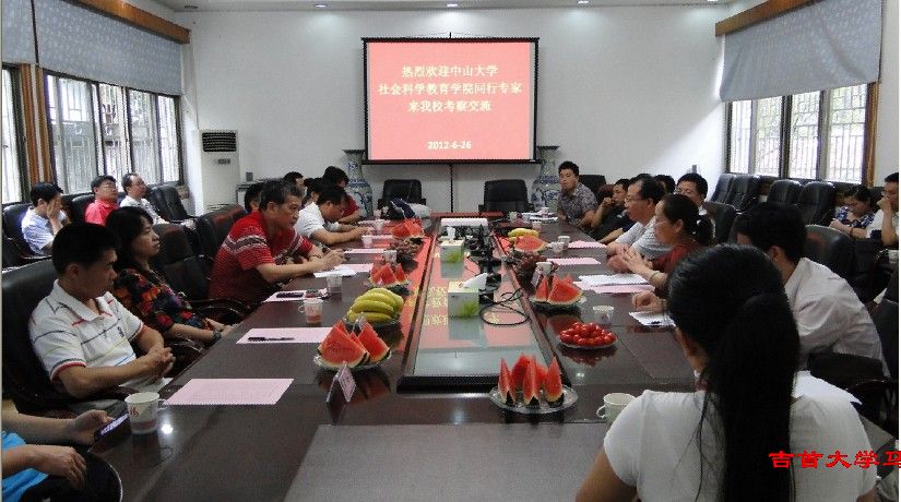 2012年6月26日,我校对口支援学校中山大学,由社会科学教育学院钟明华院长带队,一行48人来我校传经送宝。下午3点在校办二会议室与我院领导和教师进行了交流。