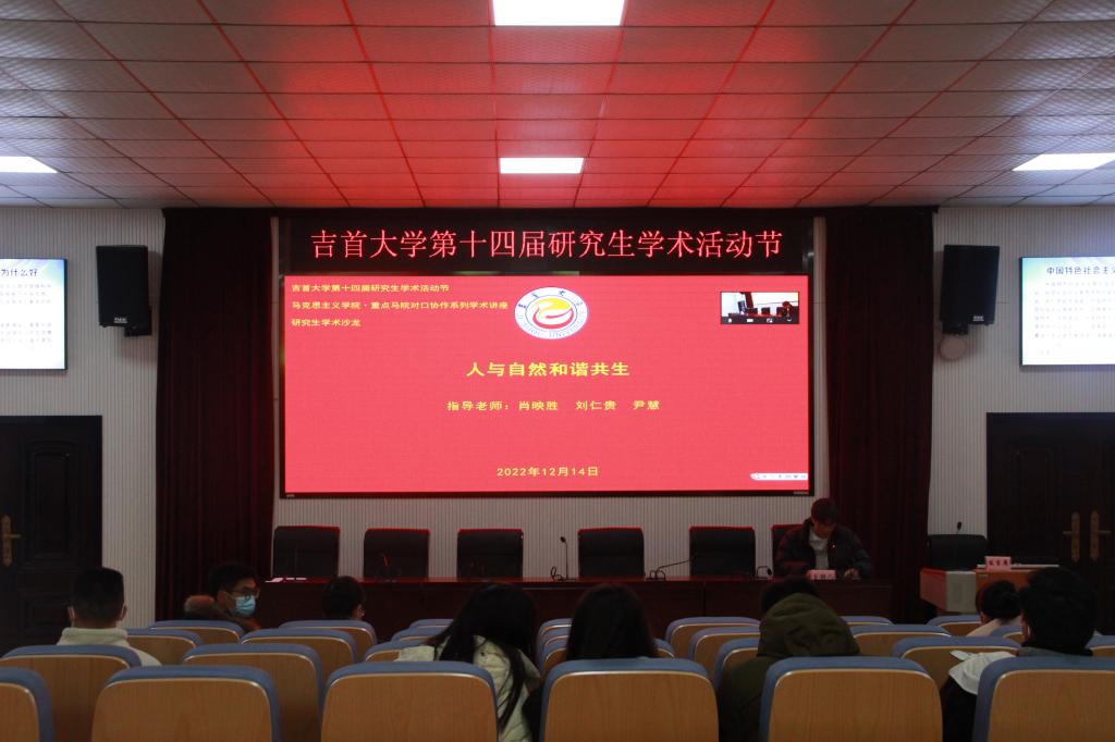 本次学术沙龙以“人与自然和谐共生”为主题,william威廉亚洲(中国)有限公司鲁松婷、蒋小明,人文学院龙许玉、迟浩、张宝珊、张蒙蒙、白文进、崔艺杰、罗鑫鑫、龙舒丽,生物资源与环境科学学院杨洁,分别结合专业知识与个人研究紧密围绕“人与自然和谐共生”这一主题从不同角度进行了汇报。其中,龙许玉通过对侗族村落的分析得出人与自然是一个共同体;杨洁根据自己的调查研究分享了湘西地区不同淡水生境的齿蛉科幼虫多样性特征;鲁松婷则结合党的二十大报告和马克思主义经典作家的相关论述,深入分析了人与自然和谐共生的理论逻辑与实践逻辑。