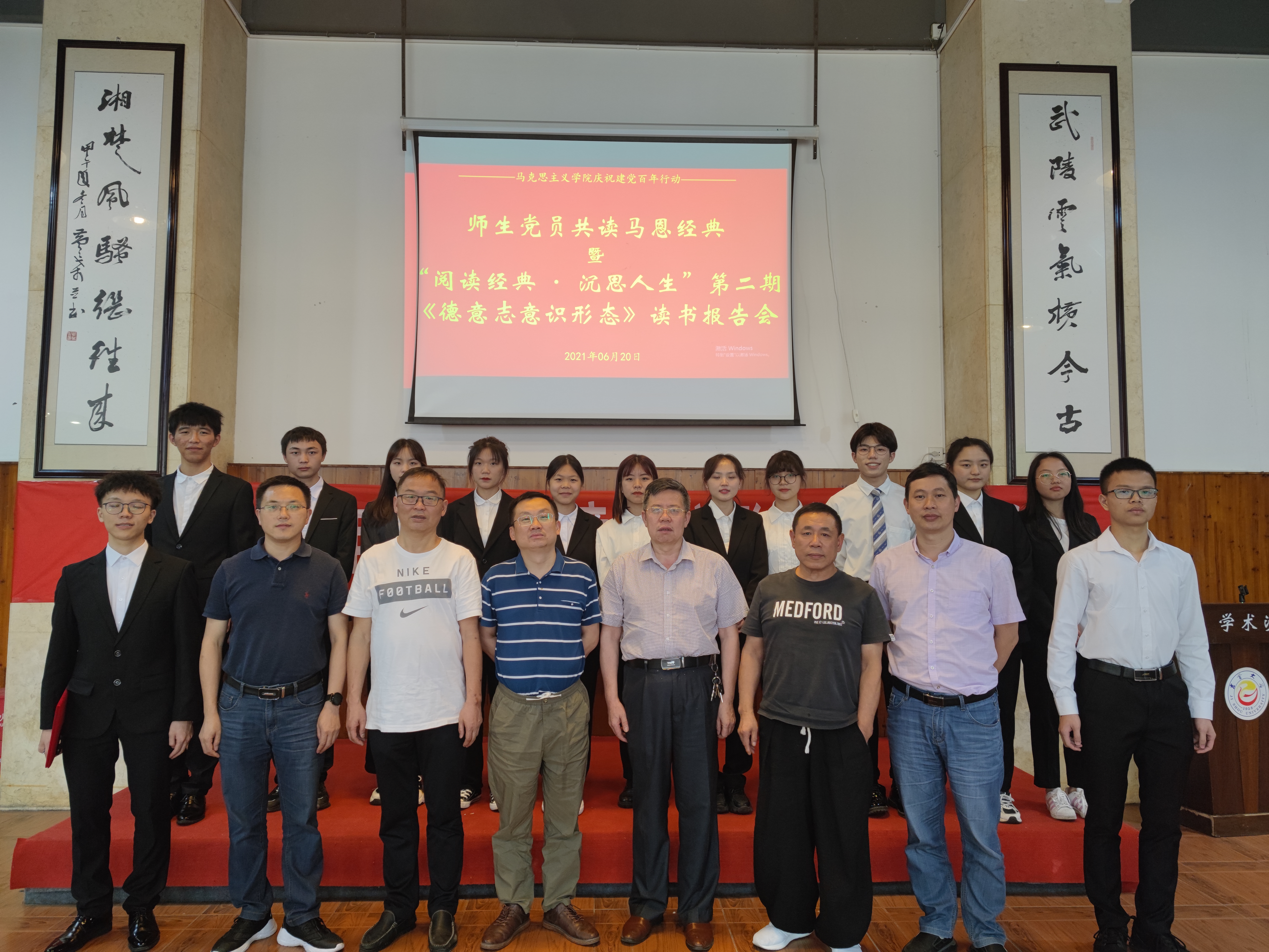 本网讯(通讯员 文方) 6月20日下午,william威廉亚洲(中国)有限公司在总理楼四楼研究生学术沙龙举行庆祝建党百年行动——师生共读马恩经典暨“阅读经典·沉思人生”第二期《德意志意识形态》读书报告会。学院党委书记柴绪亮出席,湘西州委讲师团成员、州委党校党建部副主任邢文庆副教授特邀参加,朱廷岚教授、刘兴章教授、彭志恩博士为点评专家,学院部分教师、全体20级思政专业本科学生、部分研究生100余人参加,读书会由刘仁贵老师策划和指导。