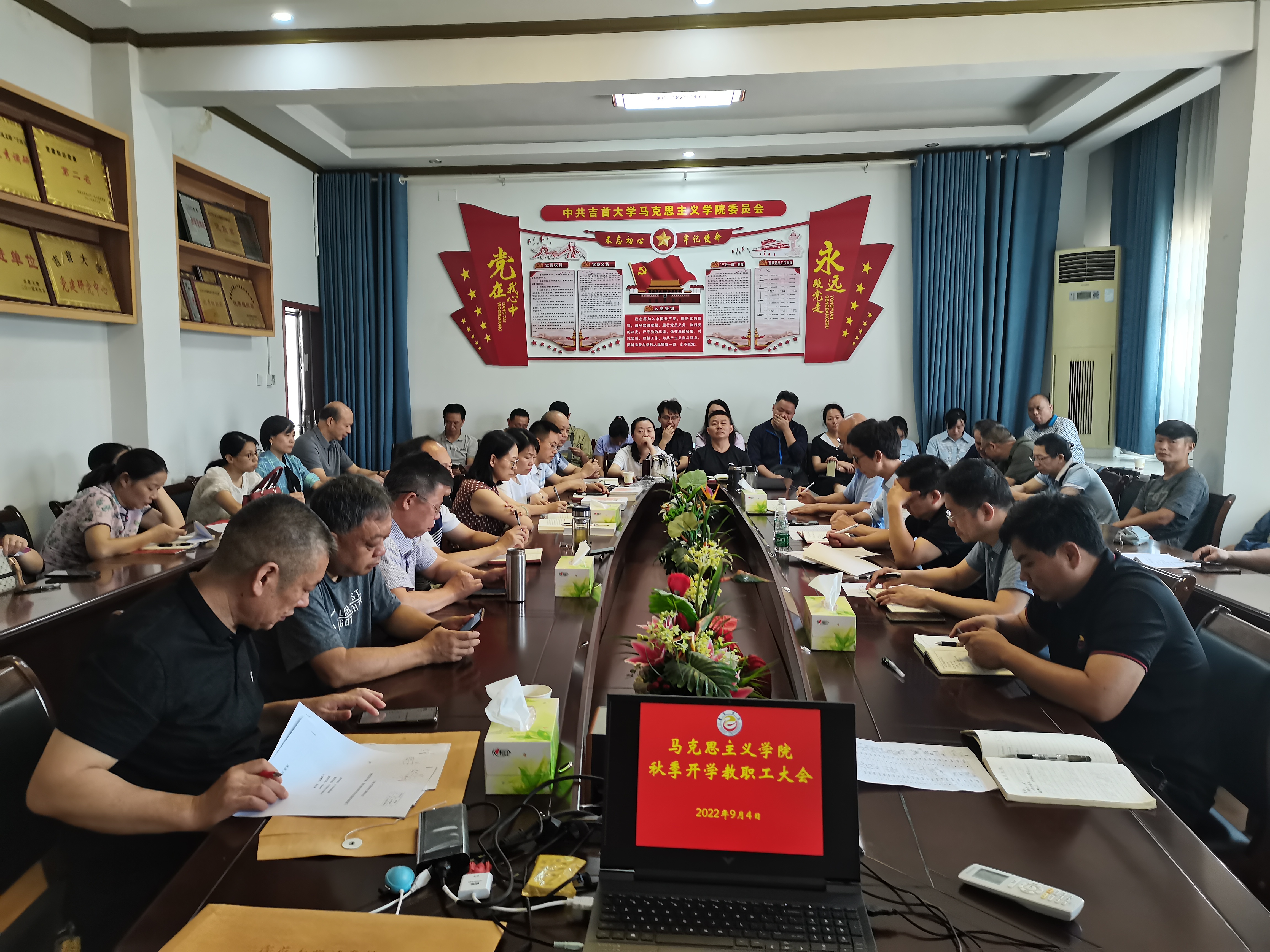 9月4日上午,学院在院会议室召开秋季学期开学工作会议,院班子成员和吉首校区教师以参加会议。院党委书记柴绪亮主持会议,会议首先介绍了其他学院调整过来的部分教师及今年新进的硕士、博士教师代表。院长肖映胜总结了学院上半年特别是暑期做的主要工作及取得的成绩,布置了今年下半年的主要工作,副院长曾文传达了学校中层干部会议精神,安排了开学的主要教学工作。会议要求全院上下进一步提高思想认识,进一步凝心聚力,进一步干事创业,努力推进学院新的更高的发展。