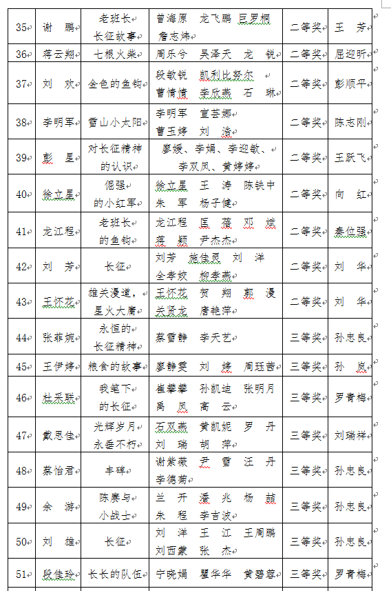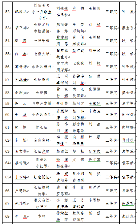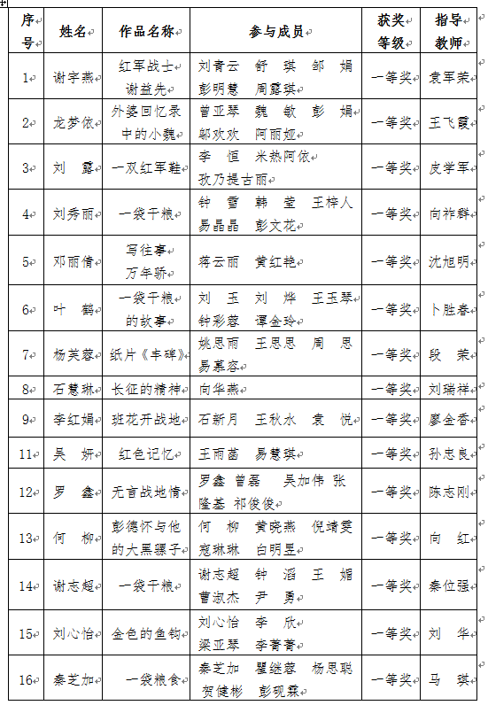 附表:纪念红军长征胜利80周年暨学习习近平总书记10.21讲话微视频展示获奖作品