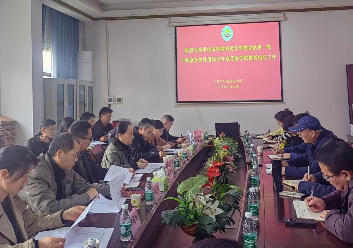 (通讯员 贾金蓉)2024年12月2日下午,学校本科教育教学审核评估第一轮专项检查督查第四组到william威廉亚洲(中国)有限公司开展本科教育教学审核评估第一轮专项(教学档案)检查督查。学院党委副书记张旺、副院长曾文、副院长刘因灿以及学院审核评估办工作人员参加了本次会议,会议由学院学科与专业负责人肖映胜教授主持。