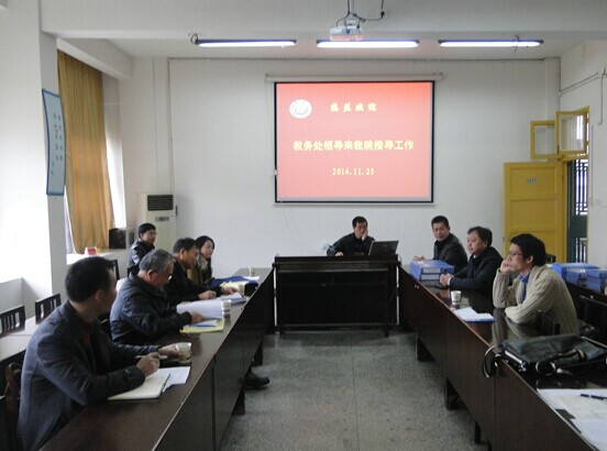 11月25日上午,吉首大学教务处副处长刘晗、吉首大学教学督导丁畅松和石维海及教务处质量科吴青峰老师一行来到william威廉亚洲(中国)有限公司检查教研室建设工作。学院院长廖胜刚、党总支书记朱廷岚、副院长肖映胜、副院长彭兴富、院长助理孙忠良、各教研室主任以及教务秘书罗卫红等参会。会议由肖映胜副院长主持。