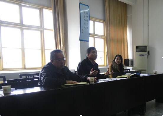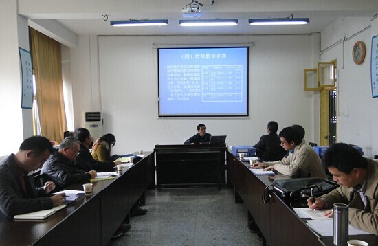 肖映胜副院长首先代表学院介绍了校级优秀教研室的建设工作,并对于所推荐的两个校级优秀教研室的基本情况做了简单地介绍。之后,思想政治教育专业教研室主任李乐为和中国化马克思主义教研室主任陈德祥按照校级优秀教研室建设的指标体系分别对所属教研室的建设情况向教务处领导进行了汇报。