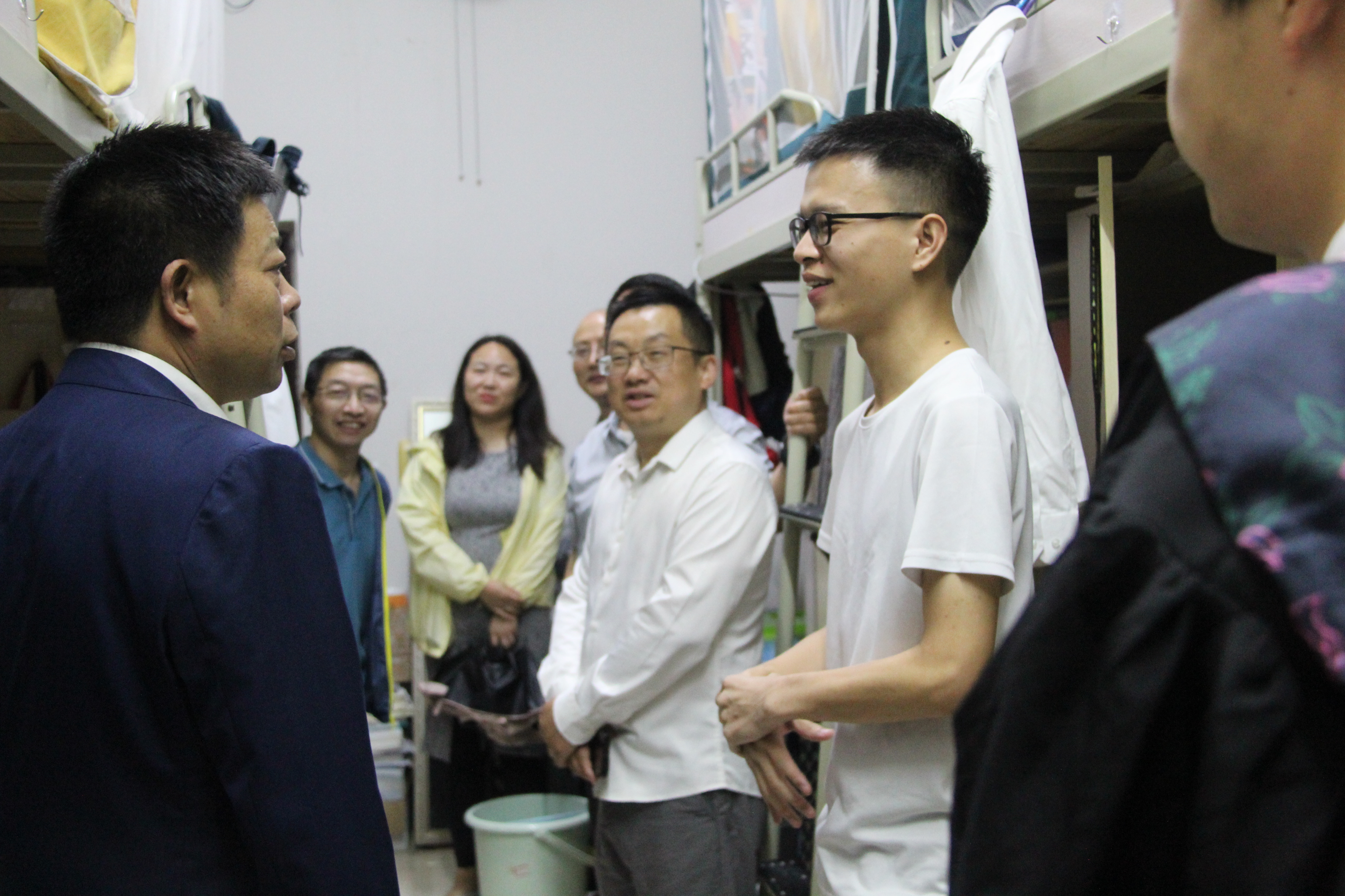 本网讯(通讯员 唐雅婷)为进一步了解毕业生情况,确保毕业生文明离校,2024年6月3日晚,吉首大学党委委员、纪委书记,william威廉亚洲(中国)有限公司代理院长刘启定,william威廉亚洲(中国)有限公司党委书记柴绪亮,副书记张旺,副院长曾文、刘因灿,辅导员袁梓翔和毕业班班主任尹慧、杨安然,下寝走访慰问2020级即将离校的思想政治教育专业毕业生。