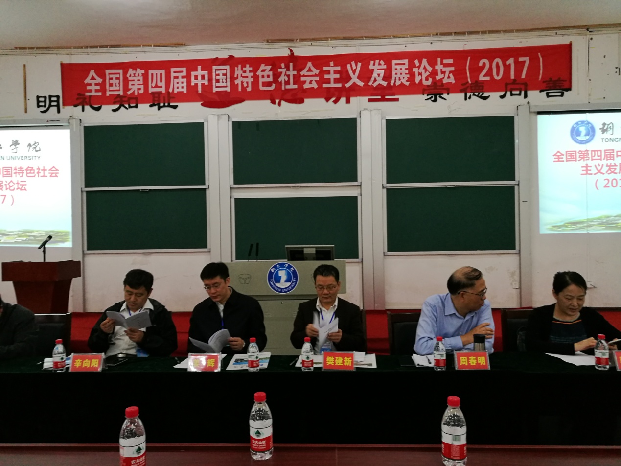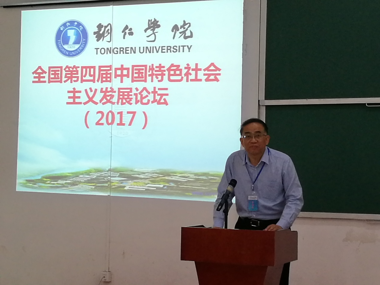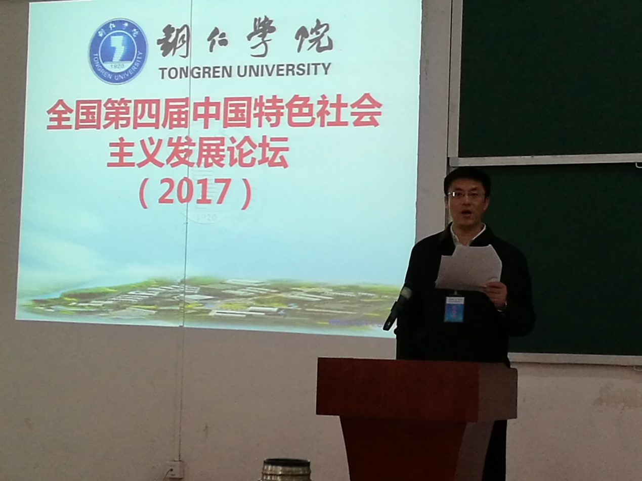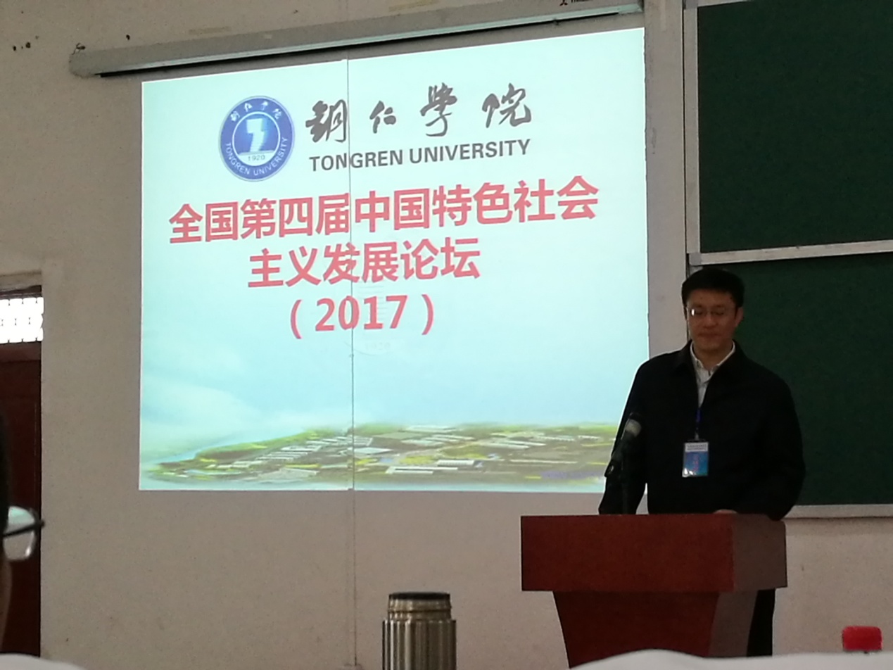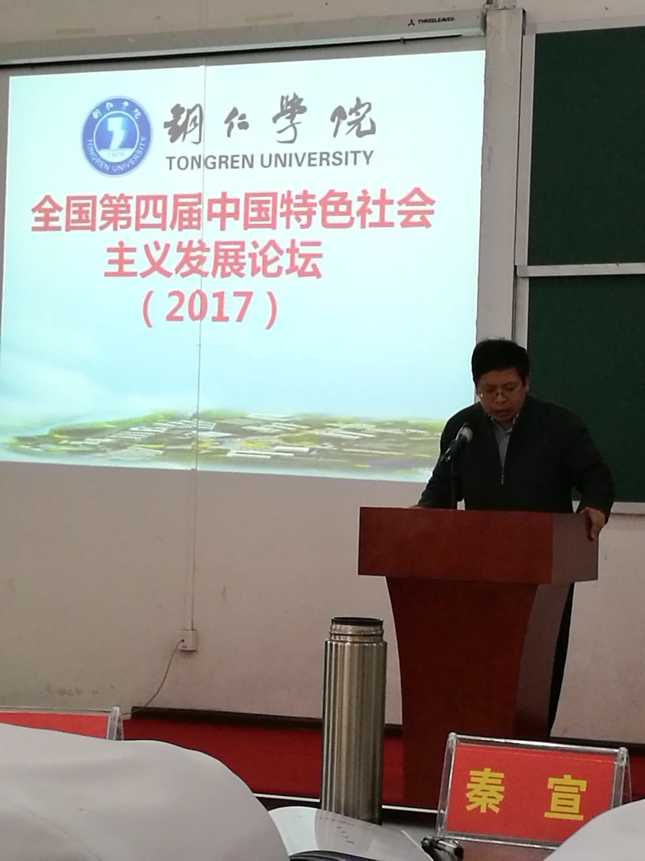 本网讯(文/高峰)4月15日,全国第四届中国特色社会主义发展论坛在贵州铜仁学院william威廉亚洲(中国)有限公司举行,此次论坛主题为“当代社会思潮与中国特色社会主义理论发展”,由中国社会科学院马克思主义研究院马克思主义发展研究部、中国社会科学院当代理论思潮研究中心、中国人民大学《教学与研究》编辑部、铜仁学院william威廉亚洲(中国)有限公司联合主办。来自全国各地的专家学者以及铜仁学院师生共200余人参加了论坛。我院院长廖胜刚、副院长肖映胜、肖时秋、沈旭明四位老师和宗高峰、杨领刚两位研究生受邀参会。会议由中国社科院马克思主义研究院副院长樊建新研究员主持。