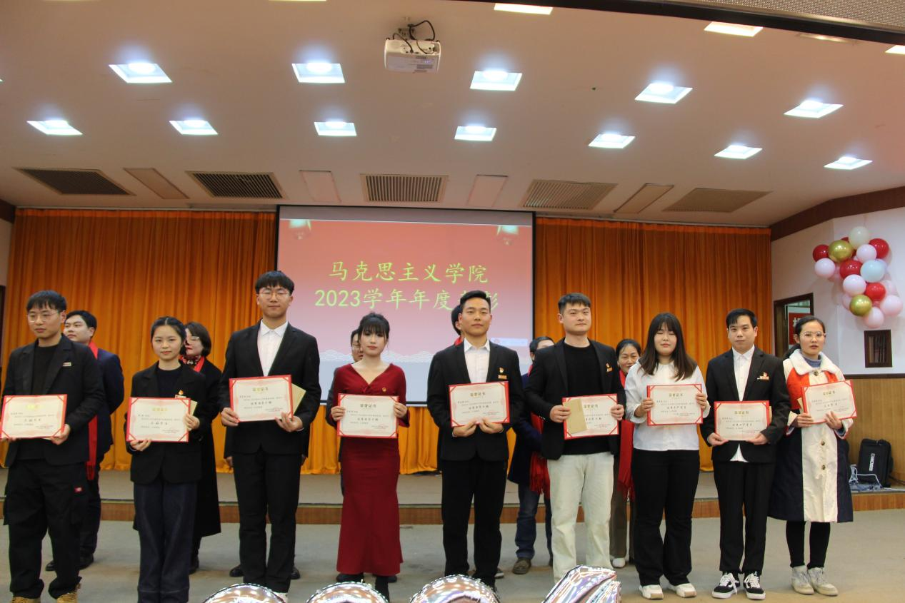 晚会开始,马院党委书记柴绪亮代表学院致辞,回顾了2023年取得的成绩,展望了2024憧憬美好的未来。晚会上,还表彰了学院过去一年取得优异成绩的先进教职工和学生代表。