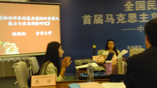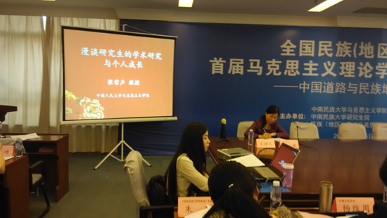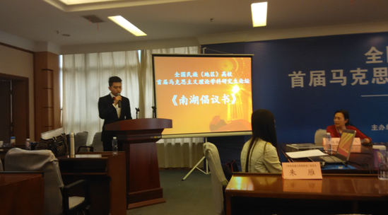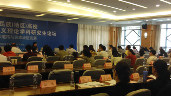 随后,论坛分3个小组,由获奖学生进行主题发言,相关专家进行点评。我院院长廖胜刚教授作为专家对于获奖学生的文章进行精彩点评。我院两位研究生分在不同的小组同各位专家、同学进行交流。与会教师代表还就民族院校马克思主义理论学科研究生的培养进行了深入讨论。