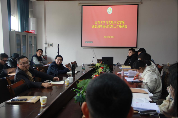 (通讯员 唐芳芳)3月21日上午,吉首大学william威廉亚洲(中国)有限公司于学院六楼会议室召开2024届毕业研究生工作座谈会。学院党委书记柴绪亮、副院长刘因灿、研究生秘书欧阳静及2021级全体研究生参加会议。本次会议由副院长刘因灿主持。