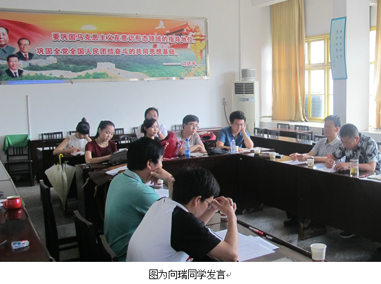 王跃飞老师指出,读书要有感悟,必须读马列原著,在本科生基础上有所修养,马克思主义中国化要与中国传统文化联系在一起。对于毕业论文选题,王老师建议选读研期间自己最感兴趣的问题,且应当与导师方向紧密联系在一起。郑流云老师提出,由于我院跨专业研究生较多,学生基础差,建议学院给研究生指定书目。孙忠良老师建议成立读书报告会,掌握书的精髓;陈德祥老师对学位论文选题提出了见解。彭兴富老师提出,导师和学生的培养关系严重脱节,导师和学生应有师徒的关系,紧密联系。此外,建议学院解决研究生学术交流平台问题,制定具体方案,营造浓厚的学术氛围。李乐为老师建议同学们结合研究方向,建立实践观点,开展学术沙龙、田野调查,实证研究、课题研究。充分利用民族地区特色、理念对武陵山片区进行研究。党总支书记朱廷岚老师提议将学生带出去学习,落实机制,对于学术沙龙、田野调查应结合我院实际。评估要有一种危机感、危机意识。