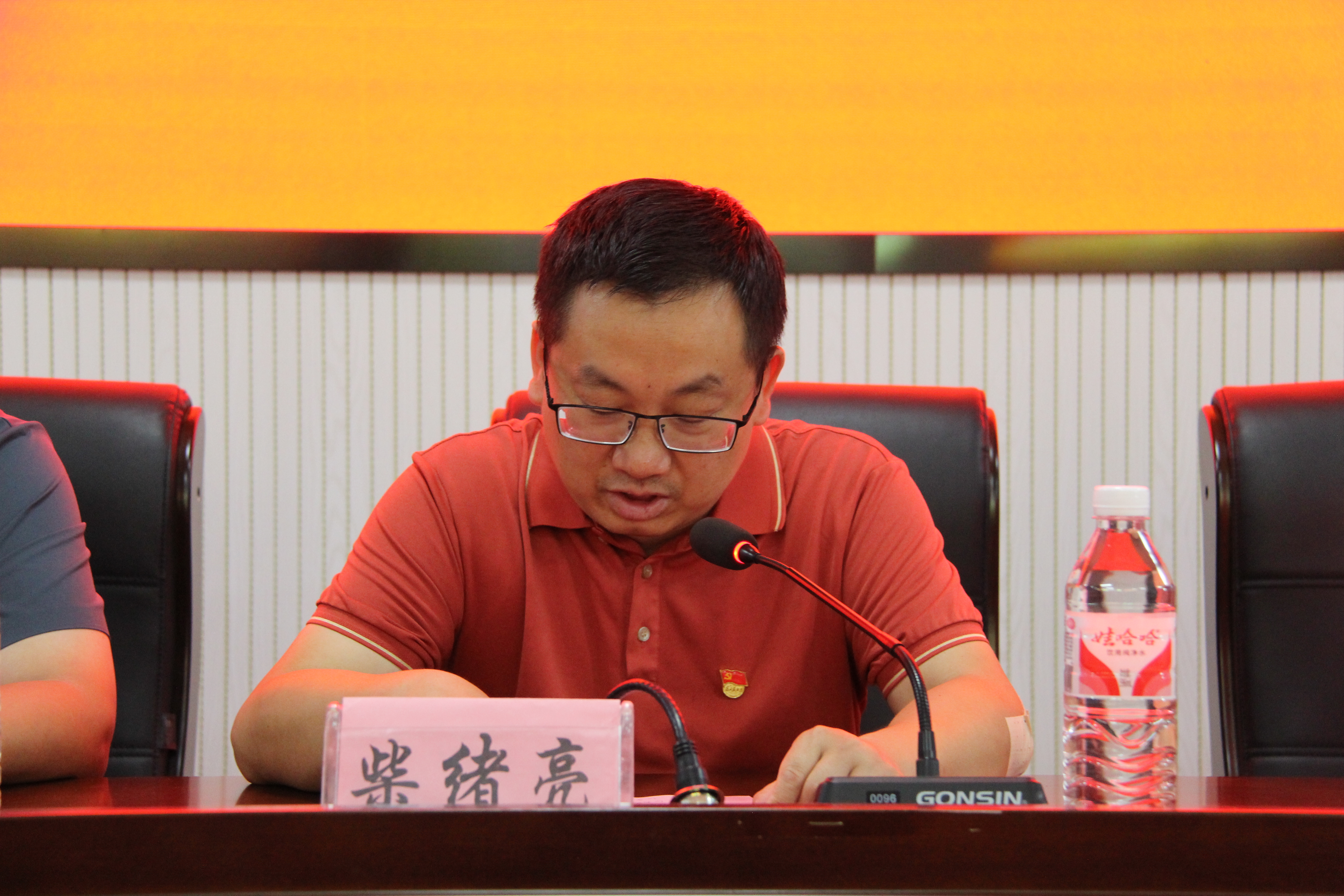 (图为党委书记柴绪亮发言)
